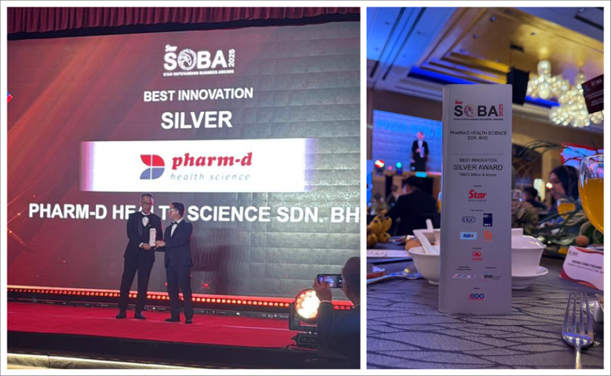Group Managing Director Mr Wong Chin Cheang received the Silver trophy for Best Innovation at the Star Outstanding Business Awards (SOBA) 2025 on behalf of Pharm-D Health Science Berhad. KUALA LUMPUR – Pharm-D Health Science…